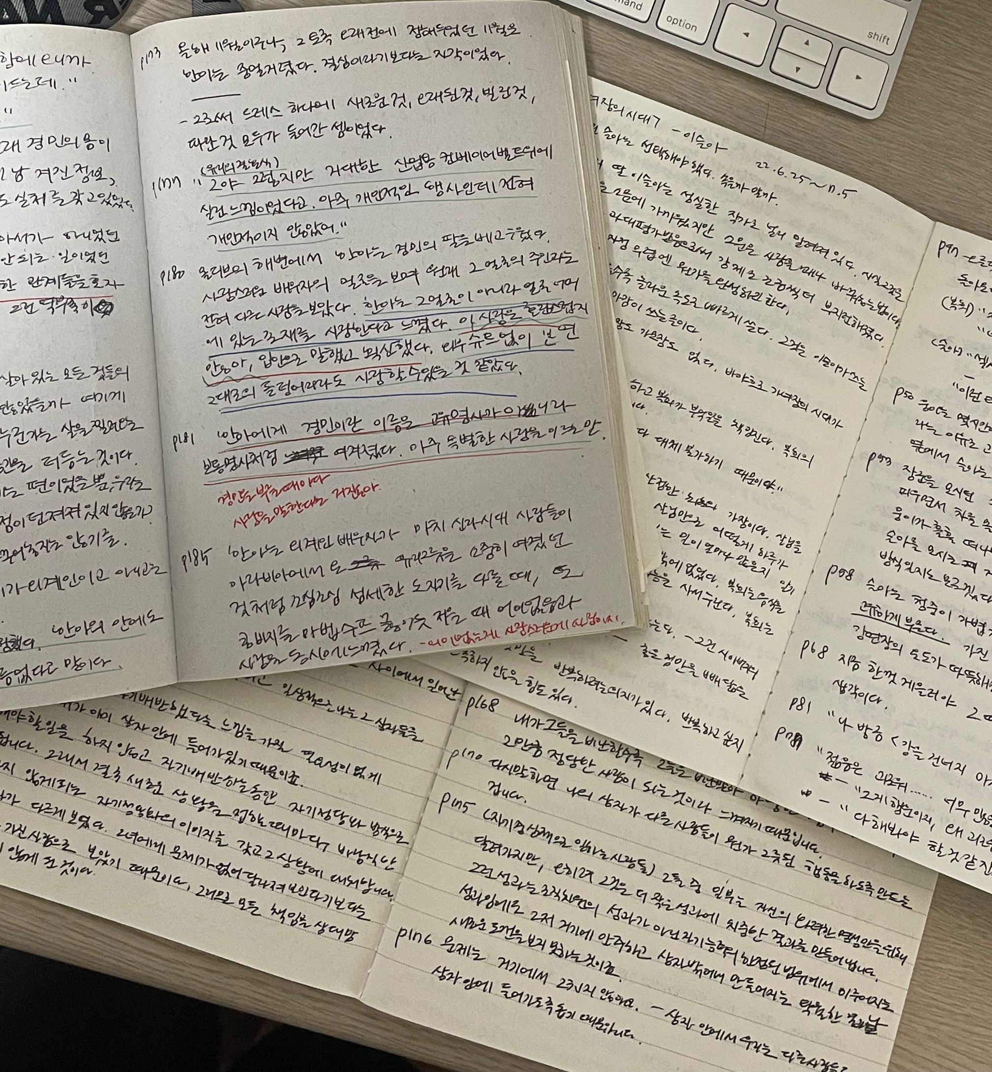 책을 읽기 시작하면서, '필요 외'의 글도 아주 조금씩 쓰기 시작했다. 노트에 필사를 했고 휴대폰으로 책에 대한 짧은 감상을 남겼다.