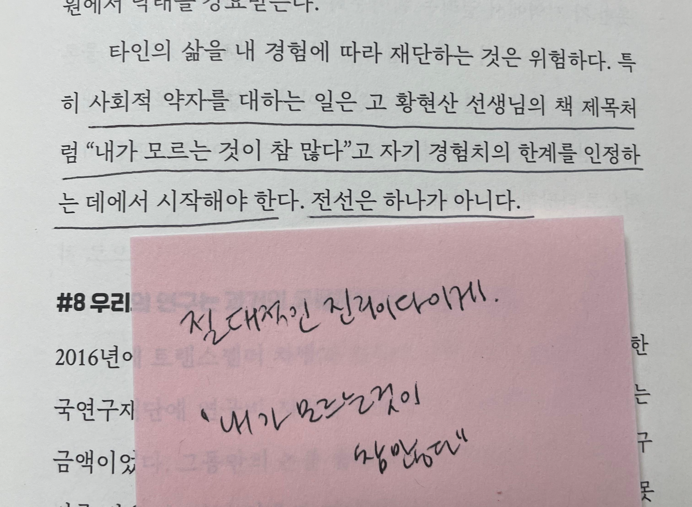 "내가 모르는 것이 참 많다"는 것을 인정하기, 각기 다른 전선이 있음을 잊지 않기