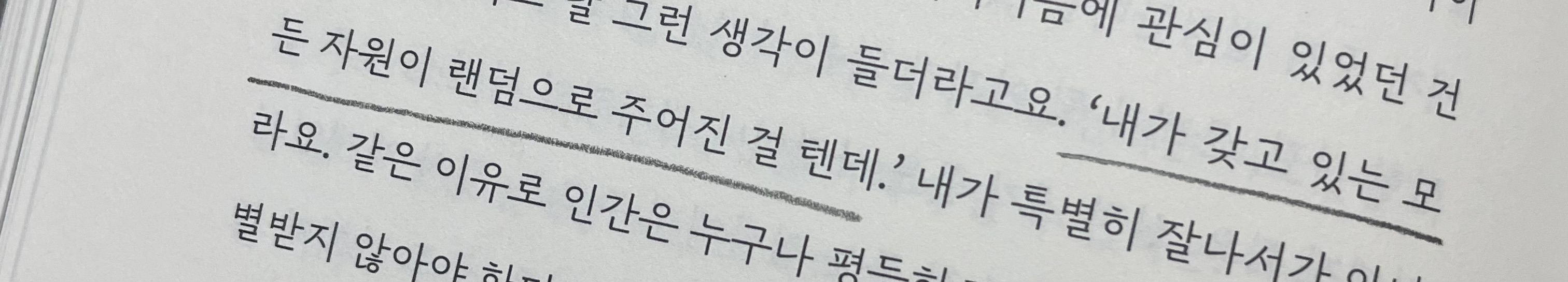 내가 가진 대부분의 자원이 나의 노력 여하에 의한 것이 아니라는 것을 알고 (- 그 노력이 가능했던 것조차 운이라는 것을 알고) 자만하지 않을 수 있고