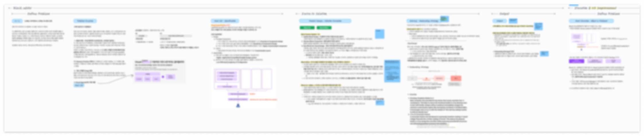 이렇게 정리를 하다보면, 어떤 영역을 어떤 형식으로 전달해야 할지에 대한 대략적인 감이 잡힌다. 예컨대, 이 부분은 텍스트로만 전달하기에는 복잡도가 높으니 도식화해야겠구나, 요건 읽는 사람으로 하여금 감각적으로 느끼게 하기 위해 비주얼적으로 표현해야겠구나 - 하는 식의 판단이 든다. 그렇게 텍스트 외의 방식으로 전달해야겠다고 생각한 부분들에 대해서, 완벽한 디자인까지는 아니더라도 대략적으로 '이런 모양이면 어떨까?' 하는 그림을 그리기도 했다.