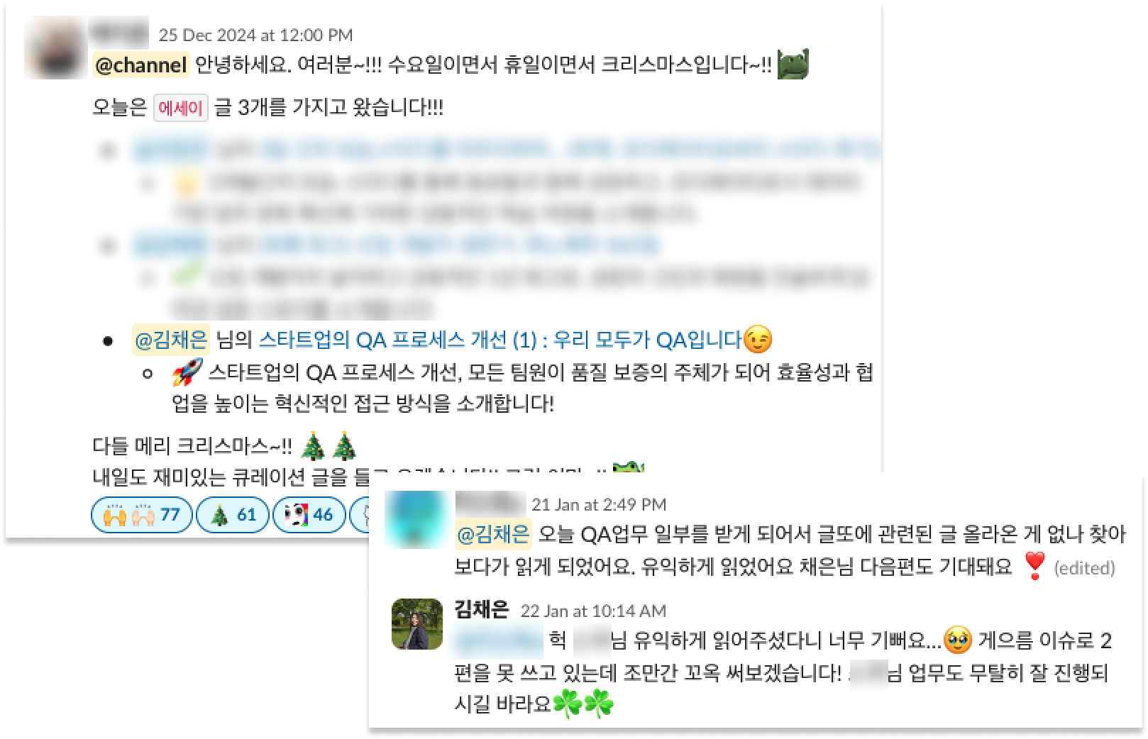 | 스타트업의 QA 프로세스 개선 (1) : 우리 모두가 QA입니다😉 (2) | 2024.11.24 |